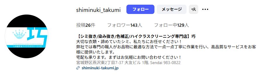 「しみ抜き&ハイクラスクリーニング巧」は、仙台市で衣類や革製品のしみ抜きに強みを持つ専門店です。